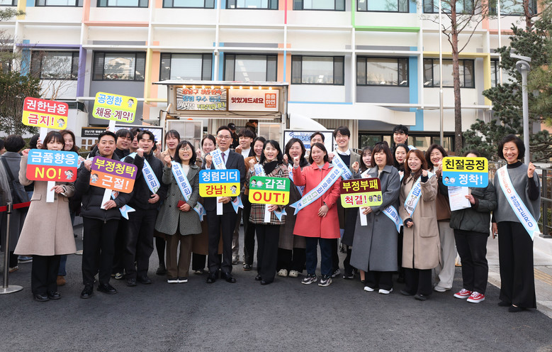 [부자동네타임즈=이병도 기자] 꿈이 모이는 도시, 미래를 그리는 강남구(구청장 조성명)가 3월 11일 구청에서 ‘여러분 덕분입니다’ 청렴캠페인을 진행했다. 2025년 공공기관 종합청렴도 평가에서 3년 연속 청렴 우수등급을 달성한 것을 기념하고, 반부패·청렴 실천 의지를 다시 다지기 위해 마련한 행사다.