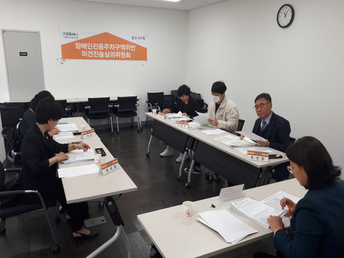 [부자동네타임즈 김인수기자] 고양특례시 일산서구는지난 지난 26일 6명의 심의위원이 참석한 가운데 ‘4월 2차 장애인전용 주차구역위반 의견진술 심의 위원회’를 개최했다.