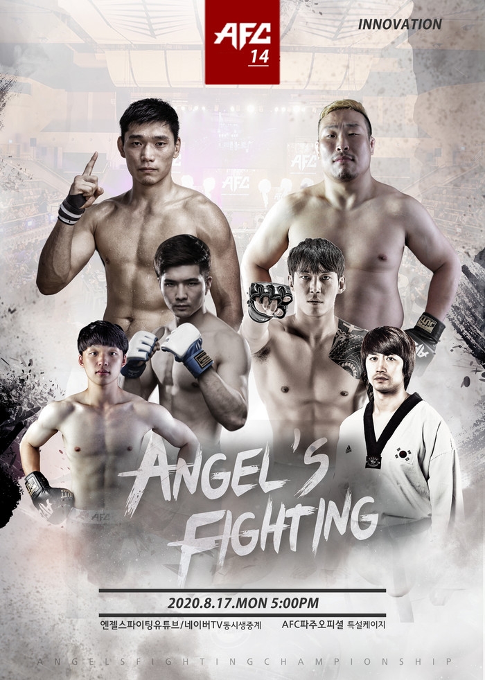 [부자동네타임즈 김인수기자] 엔젤스파이팅 챔피언십(AFC) 14는 오는 8월 17일 경기도 파주 오피셜짐서 개최된다. 이번 대회는 국내 격투기 단체의 첫 공식 넘버링 대회이다.