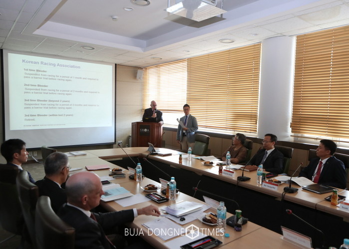 [부자동네타임즈 신동현 기자]8일(금) 한국마사회가 해외 심판 수석과 수의 수석을 초청해 컨퍼런스를 개최했다. 경마의 공정성을 책임지는 심판과 수의 분야 합동 컨퍼런스 개최로 한국경마 시행의 선진화를 이끌어내겠다는 취지다. 홍콩자키클럽(HKJC)에서 킴 켈리(Kim kelly) 심판 수석과 브라이언 스튜어트(Brian Stewart) 수의 수석이, 일본 JRA에서 요키노부 쇼무라(Yukinobu Shomura) 심판위원이 참석했다.