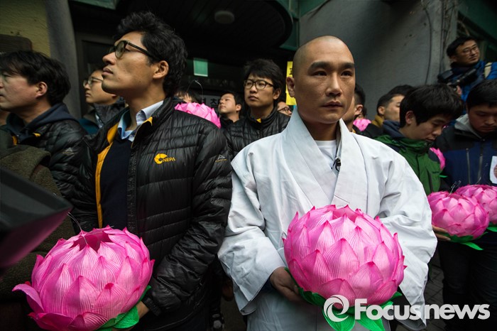 조계종 종무원들은 당시 연꽃 모양의 연등을 나눠가지며 경찰의 진입 시도를 저지하는 모습을 보였다.