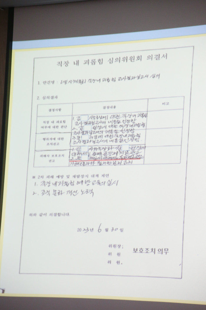 피해자가 14명이나 되는 직장 내 괴롭힘 사건은 진상조사위원회와 고충처리위원회를 거쳐 최종 결과가 의결됐고 이를 근거로 2번의 스포츠 공정위원회를 열었다.
