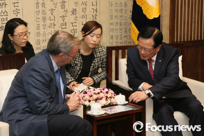 지난 2013년 1월 직접 방북한 경험이 있는 슈미트 회장은 "저는 한반도 평화적 통일에 큰 지지자"라고 밝히며 "한국을 비롯한 주변국가와 북한이 서로 이어질 수 있도록 최선을 다해 돕겠다"고 화답했다.