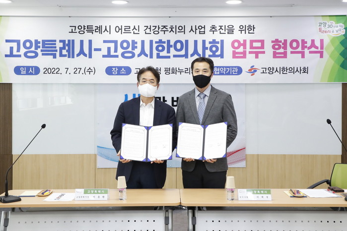 [부자동네타임즈 김인수기자] 고양특례시(시장 이동환)가 27일 고양시한의사회와 고양특례시 어르신 건강주치의 사업을 위한 상호지원과 협력에 관한 사항을 규정하는 업무협약을 체결했다.