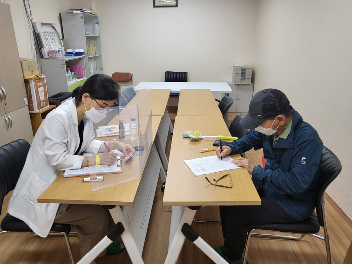 [사진설명] 주민이 치매조기검진을 받고 있다.