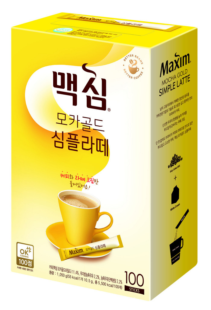 ‘맥심 모카골드 심플라떼’는 설탕을 빼고 오직 커피와 라떼 크림만으로 만들어 고소함을 강조한 제품이다. 고급 아라비카 커피만을 사용해 커피의 깊고 풍부한 맛을 살리고 신선한 우유의 함량을 높인 라떼 크림이 커피를 부드럽게 감싸주는 것이 특징이다.