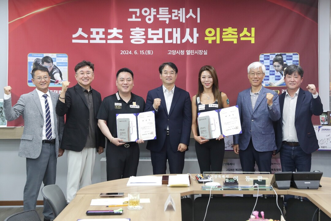 이동환 고양특례시장은 “두 선수는 PBA-LPBA의 최고 스타이자 고양시의 자랑”이라며 “앞으로 고양시의 홍보대사로서 고양시의 매력을 전 세계에 알리는 데 최선을 다해달라”고 당부했다.