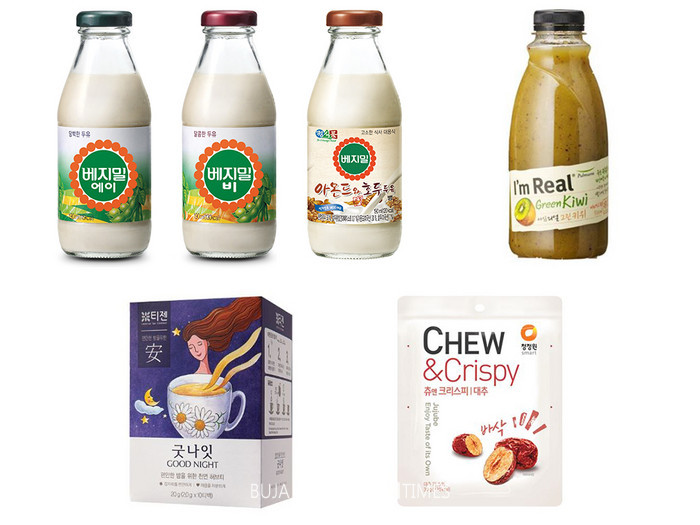 정식품의 ‘베지밀 A’와 ‘베지밀 B’는 단백질이 풍부한 ‘콩’으로 만든 식물성 건강음료로 콩 본연의 담백한 맛과 영양을 그대로 담은 제품이다. 베지밀은 한국인의 영양섭취를 고려해 각종 비타민, 칼슘, 인, 아연 등 무기질을 과학적으로 설계해 균형 있는 영양을 공급해 준다. 또한, 목 넘김이 부드럽고 고소해 잠 못 드는 밤 따뜻하게 데워 먹으면 숙면에 도움이 된다.