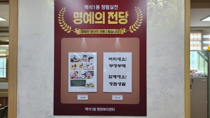 한철희 백석1동장은 “청렴 실천 의지를 높이기 위해서는 일상 속에 청렴 문화가 스며들 수 있는 환경 조성이 필요하다. 직원들과 시민들이 자연스럽게 청렴을 접하고 공감할 수 있는 방법들을 지속적으로 발굴하겠다”고 밝혔다.