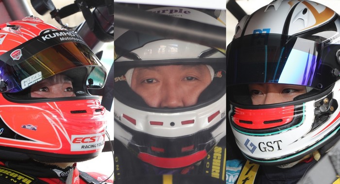 [사진설명] 엑스타 레이싱 정의철, 퍼플모터스포트 오일기, 로아르레이싱 서주원(왼쪽부터) 세 명의 드라이버가 7월 10일 인제 스피디움에서 열리는 나이트 레이스의 우승후보로 팬들의 응원을 받고 있다.