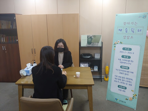 한편, 지난 2015년 6월 문을 연 고양시의 직원심리상담실 ‘마음쉼터 상담소’는 2020년 말까지 총 2,635명의 직원들이 대면 상담 서비스를 이용했으며, 직접 대면 상담 외에도 2천여 건 이상의 온라인 상담과 심리검사도 진행돼 시 공직자들의 정신건강을 지키는데 기여해 왔다. 현재, 마음쉼터 상담소는 고양시청 별관 2층에 위치해 있다.