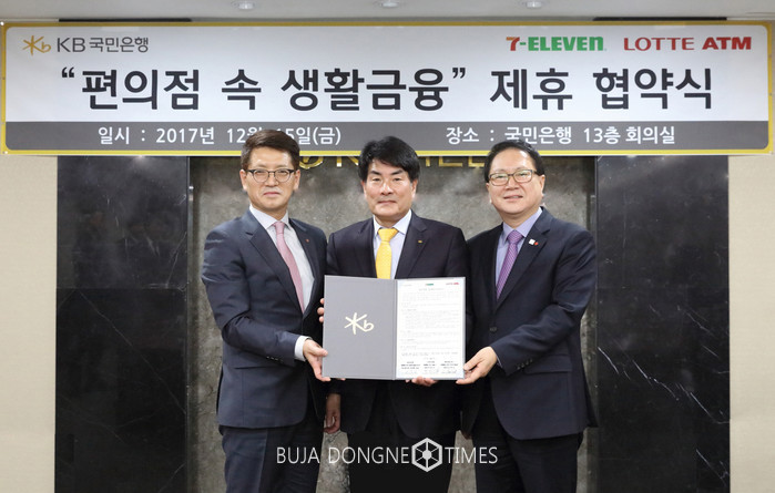 [부자동네타임즈 이현재 기자]KB국민은행(은행장 허인)은 15일, 여의도본점에서 세븐일레븐(정승인 대표이사)과‘편의점 속 생활 금융’제휴 협약식을 체결했다고 밝혔다.