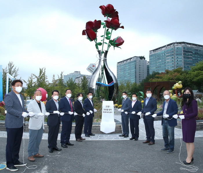 [부자동네타임즈 김인수기자] 재단법인 고양국제꽃박람회(이사장 이재준)는 "고양꽃전시관 전면 광장에서 고양시와 고양국제꽃박람회의 상징성을 담은 랜드마크 상징조형물 제막식을 10월 5일 개최했다."고 밝혔다.