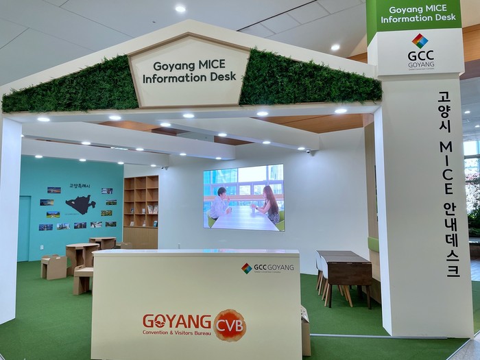 고양 마이스 안내데스크는 이번 달 9일부터 다시 운영되며, 지속가능한 친환경 종이 테이블 및 의자 구비, DID(디지털 정보 디스플레이) 마이스 정보 게시, 휴대폰 충전 서비스 등으로 행사 방문객이 쉬어갈 수 있는 공간으로 제공된다.