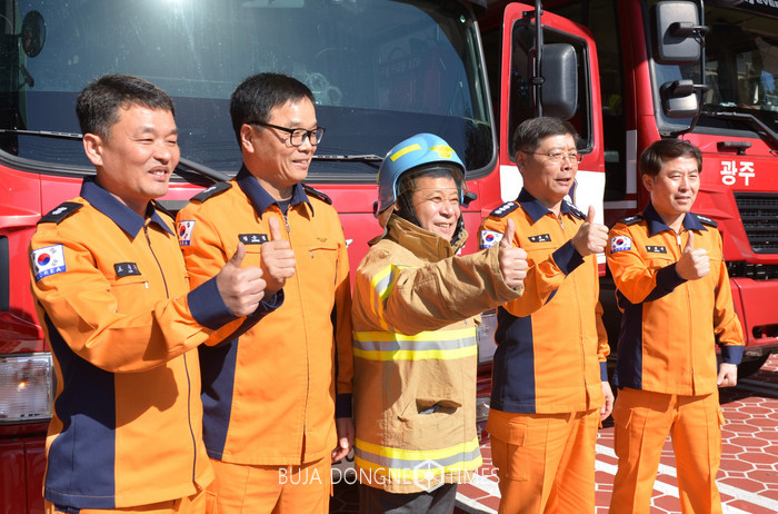 윤 시장은 이날 낮 광산소방서에 들러 근무상황과 안전장비를 점검한 뒤 직원들과 오찬을 함께 했다.