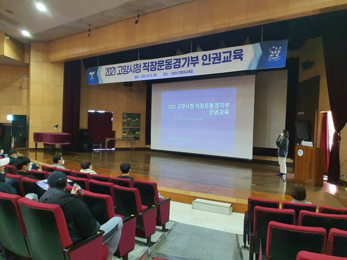[부자동네타임즈 김인수기자] 고양시가 지난 21일 고양시 민방위교육장에서 직장운동경기부 선수단을 대상으로 인권침해 행위로 인한 피해를 예방하고 안전한 직장 환경 조성을 위해 정례 인권교육을 실시하였다.