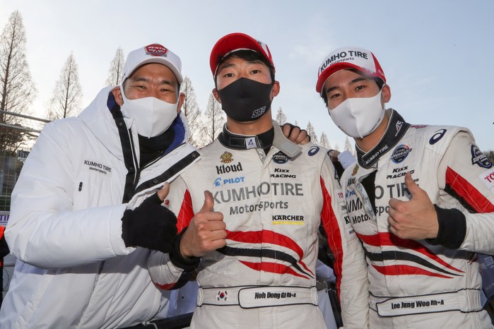금호 GT1 클래스에서도 상위권 드라이버들이 부진한 가운데 뒤를 쫓던 드라이버들이 분전하면서 격차가 좁혀졌다. 1위 정경훈(89점)과 2위 한민관(84점. 이상 비트알앤디)이 레이스를 온전히 완주하지 못하며 포인트 추가에 실패했다. 그 사이 5위였던 오한솔(서한 GP)이 7라운드 예선 1위, 결승 우승(40분13초900)으로 29점을 획득해 86점이 되면서 한민관을 3위로 끌어내리고 2위까지 치고 올라갔다. 4위였던 박석찬(비트알앤디)도 7라운드 2위(40분15초933)로 20점을 추가하면서 84점이 돼 챔피언 도전의 희망을 키웠다. 1위 정경훈부터 4위 박석찬까지의 점수차가 매우 촘촘해 28일 열리는 8라운드 레이스 결과가 주목된다. 금호 GT2 클래스에서는 이미 종합우승을 확정 지은 박동섭(위드모터스포츠)이 다시 한 번 우승했다. 예선과 결승 모두 1위를 차지한 박동섭은 시즌 포인트가 175점이 됐다. 박동섭은 “지금껏 시즌 포인트 200점은 본 적이 없는 것 같다. 200점 돌파를 목적으로 8라운드 레이스에 최선을 다하겠다”고 말했다.