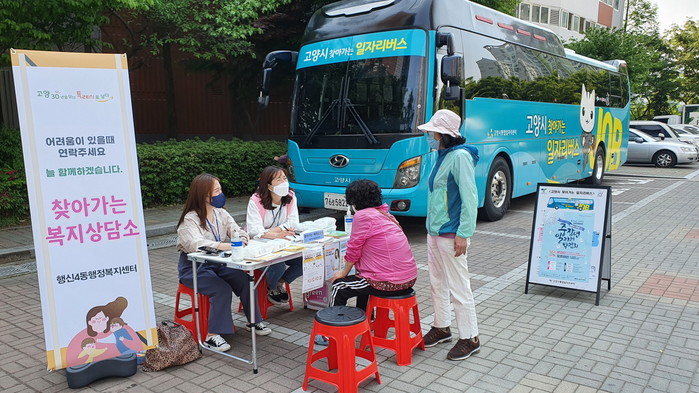 이날 복지상담소는 홀로 사는 어르신의 고독사 방지, 취약계층 위기가구 발굴 및 지원 등을 위한 다양한 복지사업을 주민들에게 안내했으며, 고양시통합일자리센터의 ‘고양시 찾아가는 일자리버스’와 연계해 일자리 상담도 제공했다.