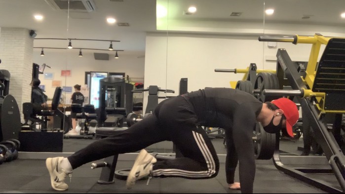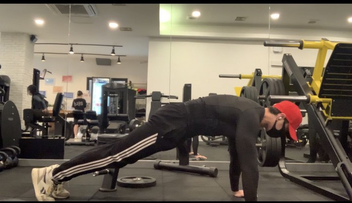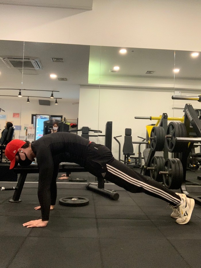 1.푸쉬업 동작으로 자세를 잡는다.