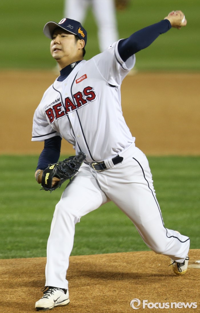 | △ 29일 잠실구장에서 열린 2015 프로야구 포스트시즌 삼성-두산 한국시리즈 3차전에서 두산 선발투수 장원준이 공을 힘차게 던지고 있다. 우정식 기자 uhcho@focus.kr |