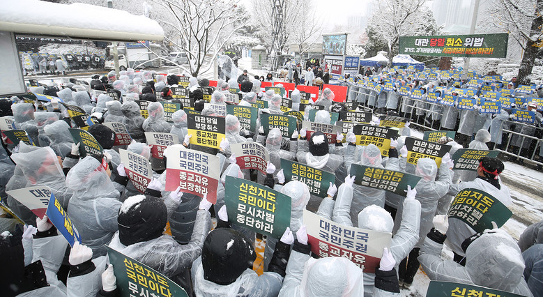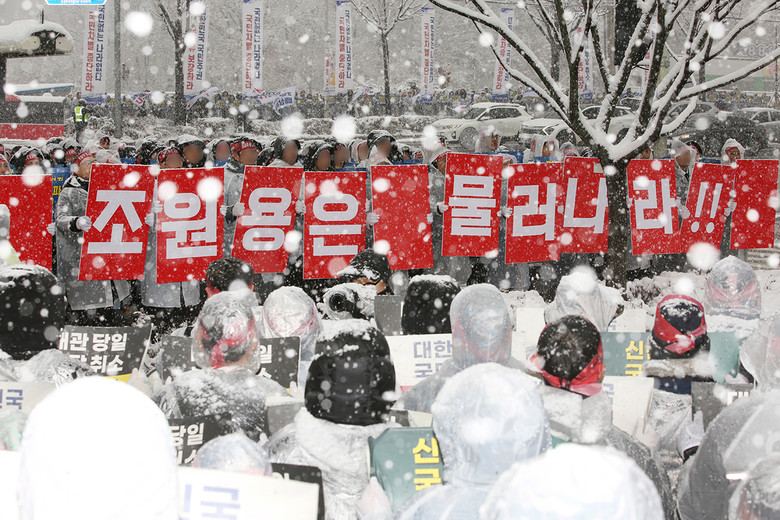 결의 대회 참석자들은 이 지파장의 개회사에 “맞습니다”라고 큰 소리로 외치며 동의를 전했다. 이날 경기도 전역에 대설특보가 발효되면서 가시거리가 짧아질 만큼 많은 눈이 내렸지만, 참석자들은 끝까지 자리와 질서를 지키며 목소리를 낮추지 않았다.