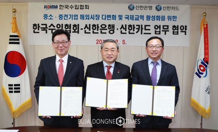 [부자동네타임즈 이현재 기자]신한은행은 서초구방배동 소재 한국수입협회 사옥에서 한국수입협회 · 신한카드와 중소무역업체의 금융지원을 위한 업무협약(MOU)을 체결했다고5일 밝혔다.