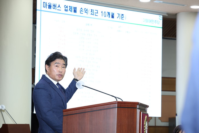 더불어 추가질문을 통해 최근 10개월 동안 업체별로 최소 3,500백만원 부터 최대 약 15억원의 적자가 발생하고 있음을 자료 제시를 제시하면서 시장에게 마을버스 준공영제 추진에 대한 명확한 의견을 물었다.