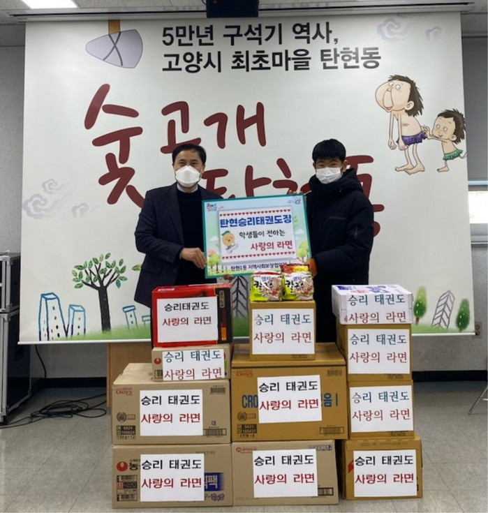 [부자동네타임즈 김인수기자] 고양시 일산서구 탄현1동 행정복지센터(동장 박상원)는 지난 24일 승리태권도장으로부터 설 명절을 맞아 소외되고 어려운 이웃들에게 나누어 달라며 ‘사랑의 라면’ 522개를 전달받았다고 밝혔다.