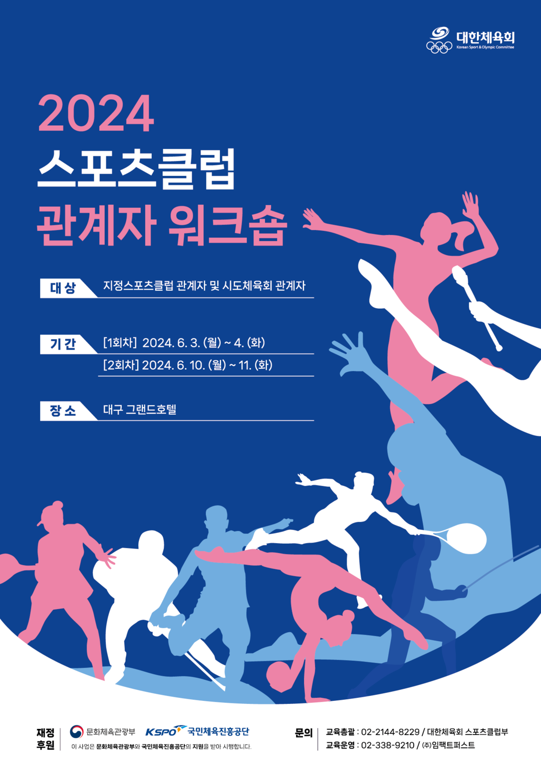 [부자동네타임즈 = 김인수 기자] 대한체육회(회장 이기흥)는 6월 3일부터 11일까지 총 2회에 걸쳐 대구 그랜드호텔에서 스포츠클럽 관계자 대상으로 ’2024년 스포츠클럽 관계자 워크숍‘을 개최한다.