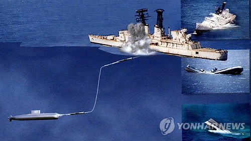 | △ 서태평양 훈련서 美 퇴역 순양함 격침시키는 '이천함' (서울=연합뉴스) 해군이 제9잠수함전단을 확대 개편해 수중 전력을 총지휘하는 잠수함사령부를 1일 창설했다. 초대 잠수함사령관으로는 잠수함사령부 창설준비단장 윤정상 소장이 내정됐다. 사진은 지난 1999년 3월 25일 서태평양 훈련에서 미국 퇴역 순양함 오클라호마 시티(Oklahoma City)를 어뢰 1발로 격침시키는 '이천함'. 2015.2.1 << 해군 제공 >> photo@yna.co.kr |