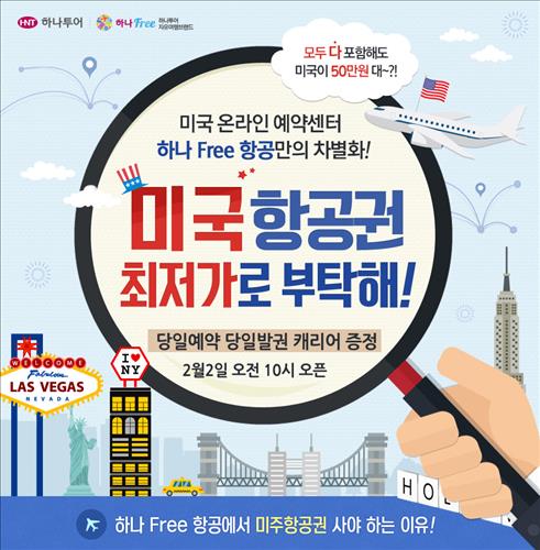 <여행정보> 하나투어, 미국노선 항공권 특가이벤트