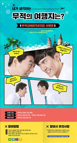 (서울=연합뉴스) 전준상 기자 = SM C&C 투어익스프레스와 언디핏은 3일부터 22일까지 '무적의 여행지를 뽑는 이벤트'를 진행한다.