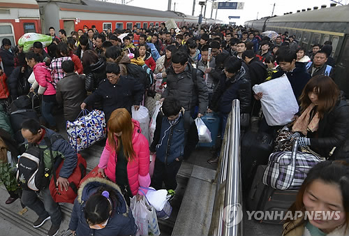 귀성인파가 가장 많이 몰리는 시기는 춘제를 눈앞에 둔 오는 16~17일께가 될 것으로 중국 언론들은 예상된다.