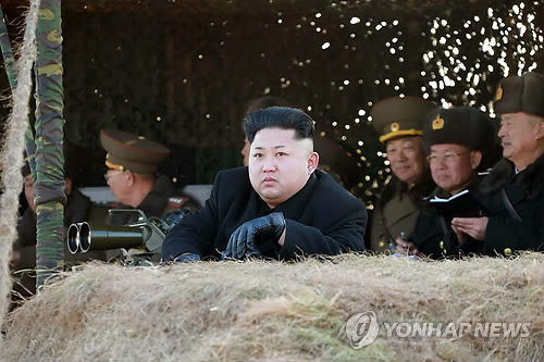| △ 북한 공·해군 합동훈련 지도하는 김정은 (평양 조선중앙통신=연합뉴스) 북한 항공 및 반항공군(공군) 소속 전투비행기들이 미군과의 해상전투 상황을 가정해 실시한 공군·해군 합동 해상목표물 타격 훈련을 시찰나온 김정은 국방위원회 제1위원장은 다양한 쌍안경을 동원해 이 모습을 주의깊게 지켜보고 있다. 조선중앙통신은 31일 이 사진을 보도하며 정확한 촬영일자와 장소를 밝히지 않았다. 2015.1.31 photo@yna.co.kr |