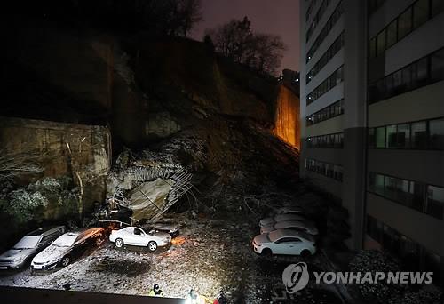 ■ 광주 아파트 인근 옹벽 붕괴…차량 수십대 매몰·파손
