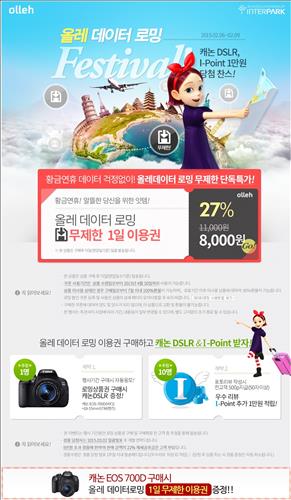 인터파크, '올레 데이터로밍 무제한권' 할인판매