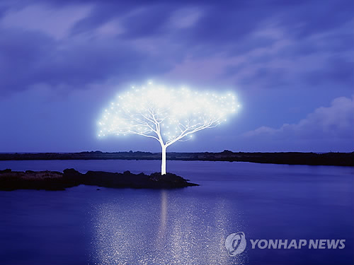 | △ 'Tree of Life in island' (광주=연합뉴스) '제14회 하정웅청년작가초대전 <<빛2014>>'전이 오는 22일까지 광주시립미술관에서 열린다. 사진은 황폐해진 자연이 균형과 조화의 회복하면서 낙원과 인간이 추구하는 천상의 행복으로 귀환한다는 뜻으로 해석되는 이정록 작가의 'Tree of Life in island'. 2015.2.6 <<광주시립미술관 제공>> areum@yna.co.kr |
