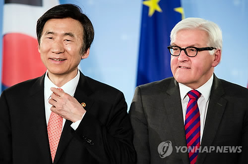 윤 장관과 슈타인마이어 장관은 독일 통일 25주년과 한반도 분단 70년이 되는 올해에 한반도 통일을 위한 다각적 협력을 강화하기로 했다고 외교부는 전했다.
