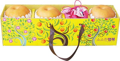 배 3개와 밤을 담은 '소소한 행복'(2만원), 사과와 배가 각각 3개씩 든 제수용 사과배 세트(3만5천원) 등이다.