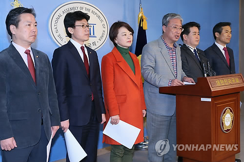 | △ 야당 국무총리후보자 인사청문회 특위 기자회견 (서울=연합뉴스) 진성철 기자 = 유성엽 간사 등 야당 이완구 국무총리 후보자 인사청문회 특위위원들이 8일 국회 정론관에서 기자회견하고 있다. 왼쪽 부터 홍종학, 진성준, 진선미, 유성엽, 김경협, 김승남 의원. |