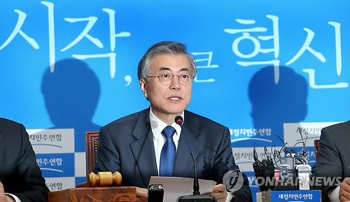 | △ 문재인 "증세없는 복지 거짓…朴정부 폭주 막아내겠다" (서울=연합뉴스) 백승렬 기자 = 새정치민주연합 문재인 신임 대표가 9일 국회에서 열린 취임 후 첫 최고위원회의에서 "증세없는 복지가 모두 거짓임이 드러났다"면서 "꼼수에 맞서 서민 지갑을 지키고, 복지 줄이기를 반드시 막겠다"고 발언하고 있다. |