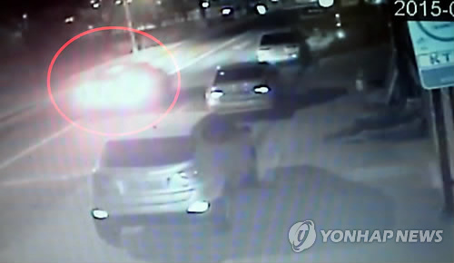 | △ 크림빵 아빠 뺑소니 사고 CCTV 영상 (청주=연합뉴스) 지난 10일 오전 1시 30분께 청주시 흥덕구의 한 도로에서 뺑소니 차량에 치여 숨진 일명 크림빵 아빠 강모(29)씨 사고의 CCTV 촬영장면. 2015.1.26 <<청주 흥덕경찰서 제공>> vodcast@yna.co.kr |