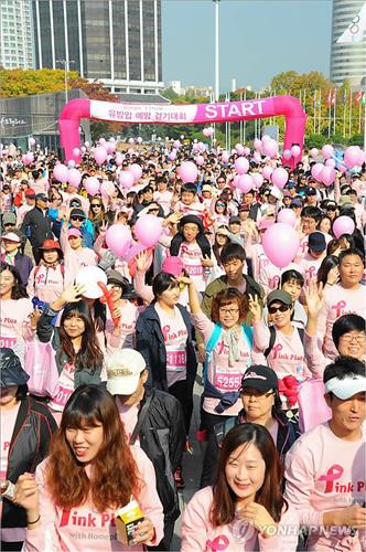 여성의 주요 암 연평균 증가율 순위는 갑상선암(22.4%), 유방암(5.9%), 대장암(4.3%) 등의 순이었고, 자궁경부암(-3.9%)과 간암(-1.6%)은 계속 떨어졌다.