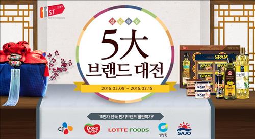 (서울=연합뉴스) 고유선 기자 = 11번가는 설을 맞아 5대 식품 브랜드(CJ·동원·청정원·사조·롯데푸드) 인기 선물세트 35종을 최대 48% 할인 판매한다고 10일 밝혔다.