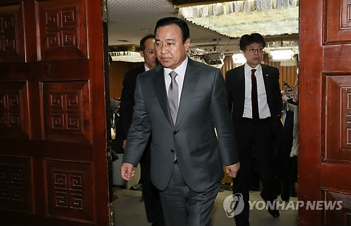 | △ 청문회장 나서는 이완구 (서울=연합뉴스) 진성철 기자 = 이완구 국무총리 후보자가 10일 국회에서 열린 인사청문회에서 음성파일 공개 논란으로 정회되자 잠시 자리를 떠나고 있다. |
