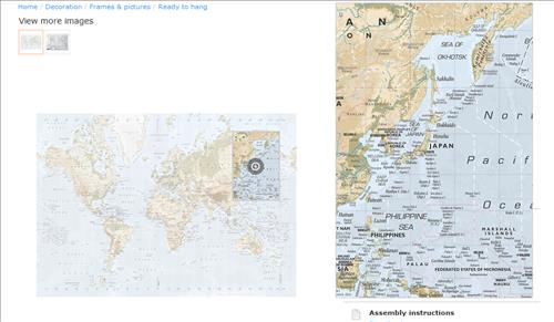 (서울=연합뉴스) 임은진 기자 = 이케아가 논란을 빚은 '일본해 표기 세계지도'(Premiar)를 본사가 있는 스웨덴은 물론 미국 등 일부 국가에서 여전히 판매하고 있는 것으로 나타났다.