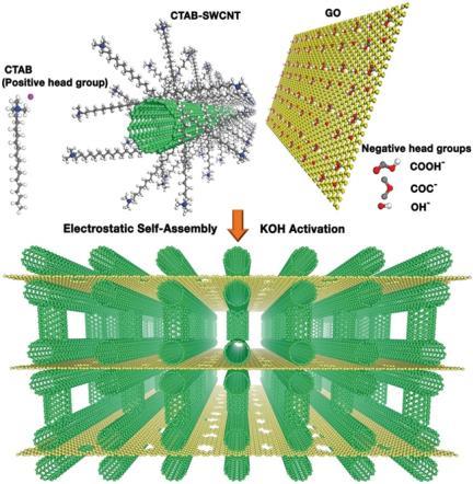 연구진은 수용액 속에서 탄소나노튜브 주위에 고분자 물질(CTAB, 양이온 계면활성제)을 흡착시키고 여기에 그래핀 구조가 들어 있는 산화흑연을 반응시켜 그래핀 층 사이에 탄소나토튜브가 수직수평으로 끼어들어 간 3차원 빌딩구조를 만들었다.