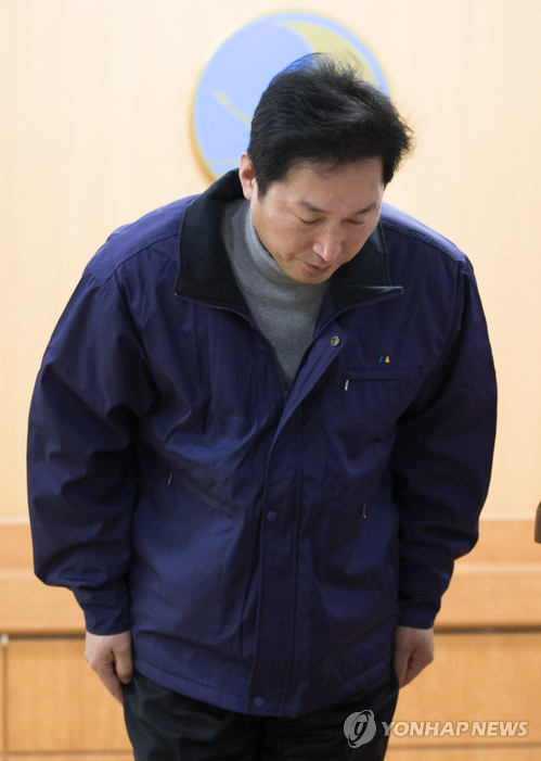 | △ 사과 인사하는 이창우 동작구청장 (서울=연합뉴스) 윤동진 기자 = 이창우 동작구청장이 12일 오전 서울 동작구청에서 열린 기자회견에서 사당종합체육관 신축공사현장 천장 붕괴 사고에 대해 사과 인사를 하고 있다. 2015.2.12 mon@yna.co.kr |