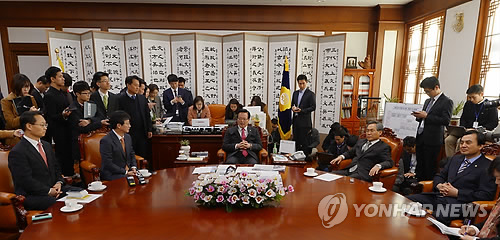 정 의장은 이날 본회의에 앞서 여야 원내지도부와 면담에서 "집권 여당인 새누리당은 당장 눈앞의 이익만 생각하지 말고 여러 가지를 다각적으로 생각해 달라"고 말했다.
