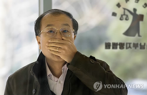| △ 얼굴 가리는 김재철 전 사장 (서울=연합뉴스) 윤동진 기자 = 업무상 배임 혐의로 약식기소된 김재철 전 MBC 사장이 13일 오전 서울 양천구 남부지방법원에서 열리는 정식 재판에 회부돼 법정으로 향하고 있다. 김 전 사장은 2010년 3월부터 2년간 법인 카드를 사용하면서 약 1천100만원 상당을 개인적으로 사용한 혐의를 받고 있다. |